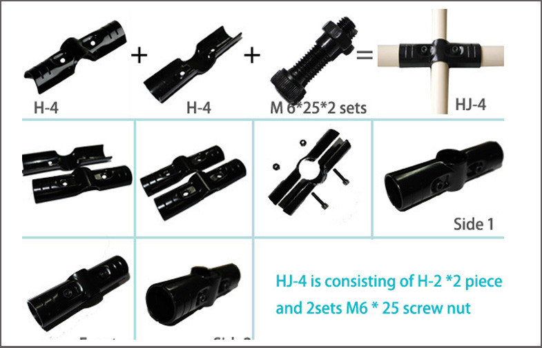 Les joints de tuyaux métalliques étant fixés par des boulons et écrous M6*25, il suffit d'une clé M6 pour serrer et desserrer lors du montage et du démontage des produits de rayonnages à tuyaux.